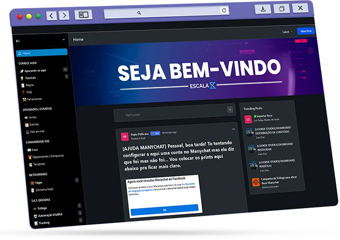 Faça parte de uma comunidade exclusiva de alunos e mentores da Escala XZ. Nela você terá acesso a conteúdos exclusivos, poderá trocar experiências e fazer networking com outros profissionais. A comunidade é uma ótima maneira de se manter atualizado com as últimas tendências e estratégias em marketing digital.